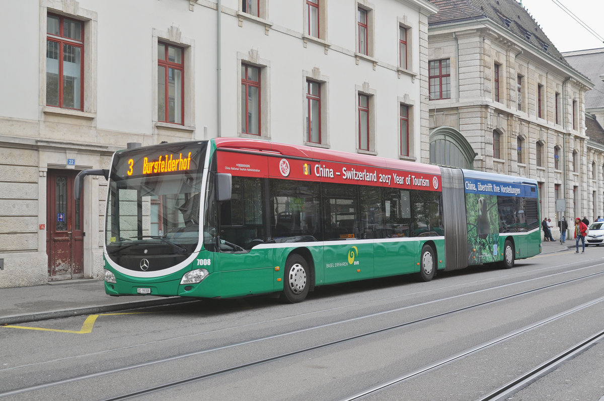Mercedes Citaro 7008 auf der Tram Ersatzlinie 3, die wegen der Baustelle am Steinenberg nicht verkehren kann, bedient die Endstation am Bahnhof SBB. Die Aufnahme stammt vom 26.09.2017.