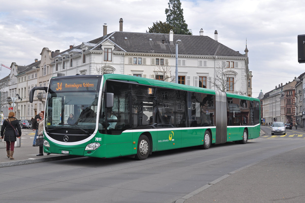 Mercedes Citaro 7011, auf der Linie 34, bedient die Haltestelle Wettsteinplatz. Die Aufnahme stammt vom 15.03.2018.