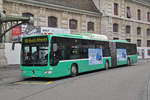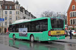 MAN Lions City von Südbadenbus, auf der Linie 38, verlässt die Haltestelle Wettsteinplatz. Die Aufnahme stammt vom 15.03.2018.