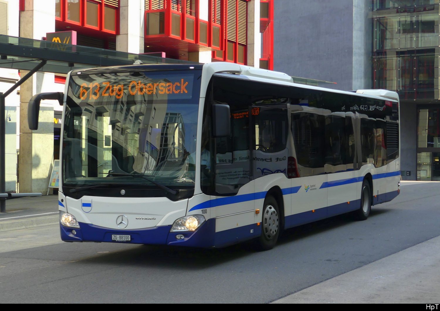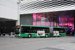 Mercedes Citaro 7023 im Einsatz als Tramersatz auf der Linie 6, wendet am Messeplatz. Die Busse ersetzen das Tram, weil die Geleise beim badischen Bahnhof ersetzt werden und die Haltestelle behindertengerecht umgebaut werden. Die Aufnahme stammt vom 19.10.2018.