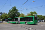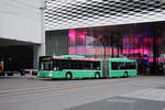 MAN Bus 757 im Einsatz als Tramersatz auf der Linie 6, fährt zur Endhaltestelle am Messeplatz. Die Busse ersetzen das Tram, weil die Geleise beim badischen Bahnhof ersetzt werden und die Haltestelle behindertengerecht umgebaut werden. Die Aufnahme stammt vom 19.10.2018.