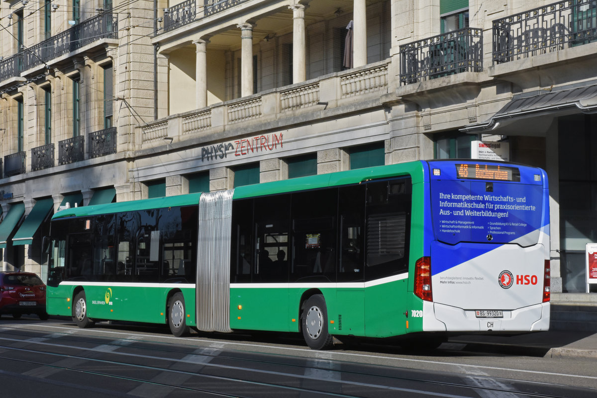 Mercedes Citaro 7020, auf der Linie 48, verlässt die Haltestelle am Bahnhof SBb. Die Aufnahme stammt vom 05.11.2018.