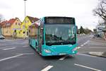 Mercedes Citaro 7032 wirbt an der letzten MUBA für neue Chauffeure für die Basler Verkehrs Betriebe. Die Aufnahme stammt vom 09.02.2019.