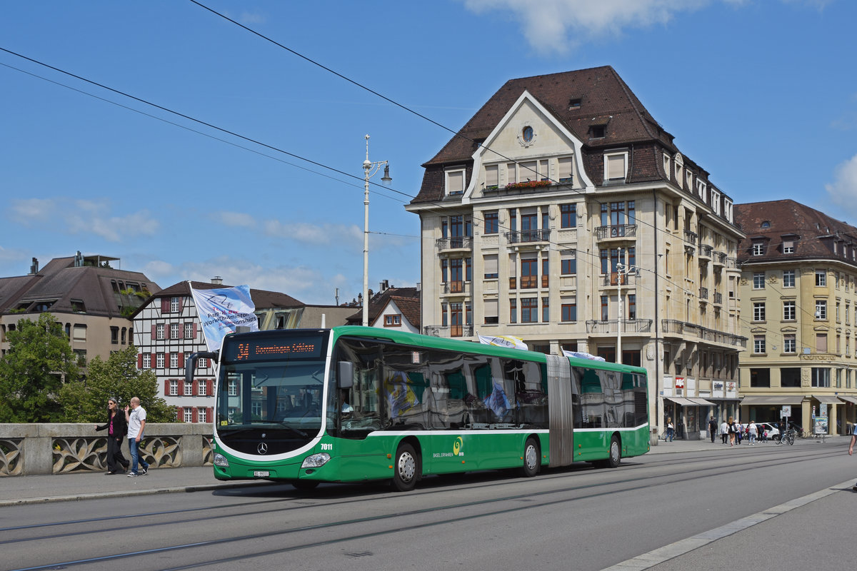 Mercedes Citaro 7011, auf der Linie 34, überquert die Mittlere Rheinbrücke. Die Aufnahme stammt vom 21.08.2019.