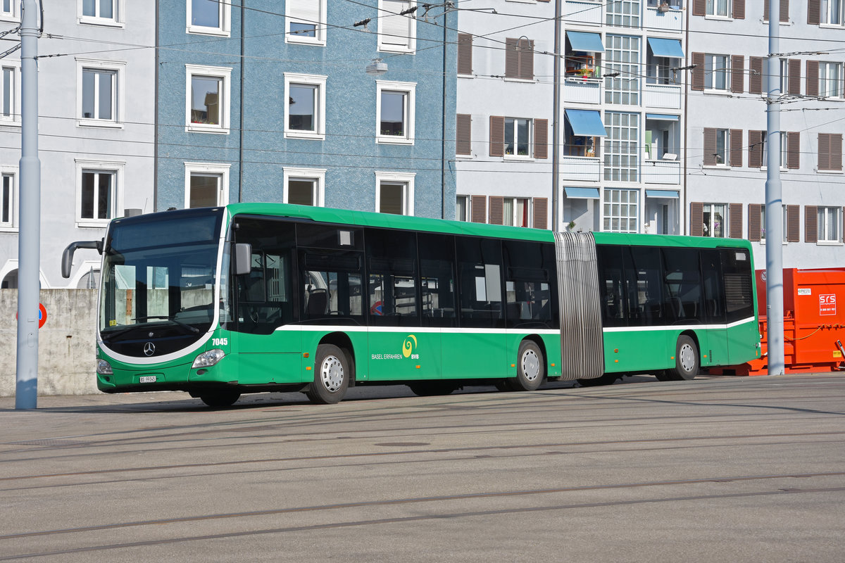 Mercedes Citaro 7045 steht auf dem Hof des Depots Wiesenplatz. Die Aufnahme stammt vom 19.04.2021.