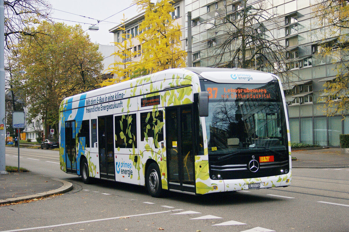 Mercedes eCitaro 1002, auf der Linie 37, fährt zur Endstation am Aeschenplatz.