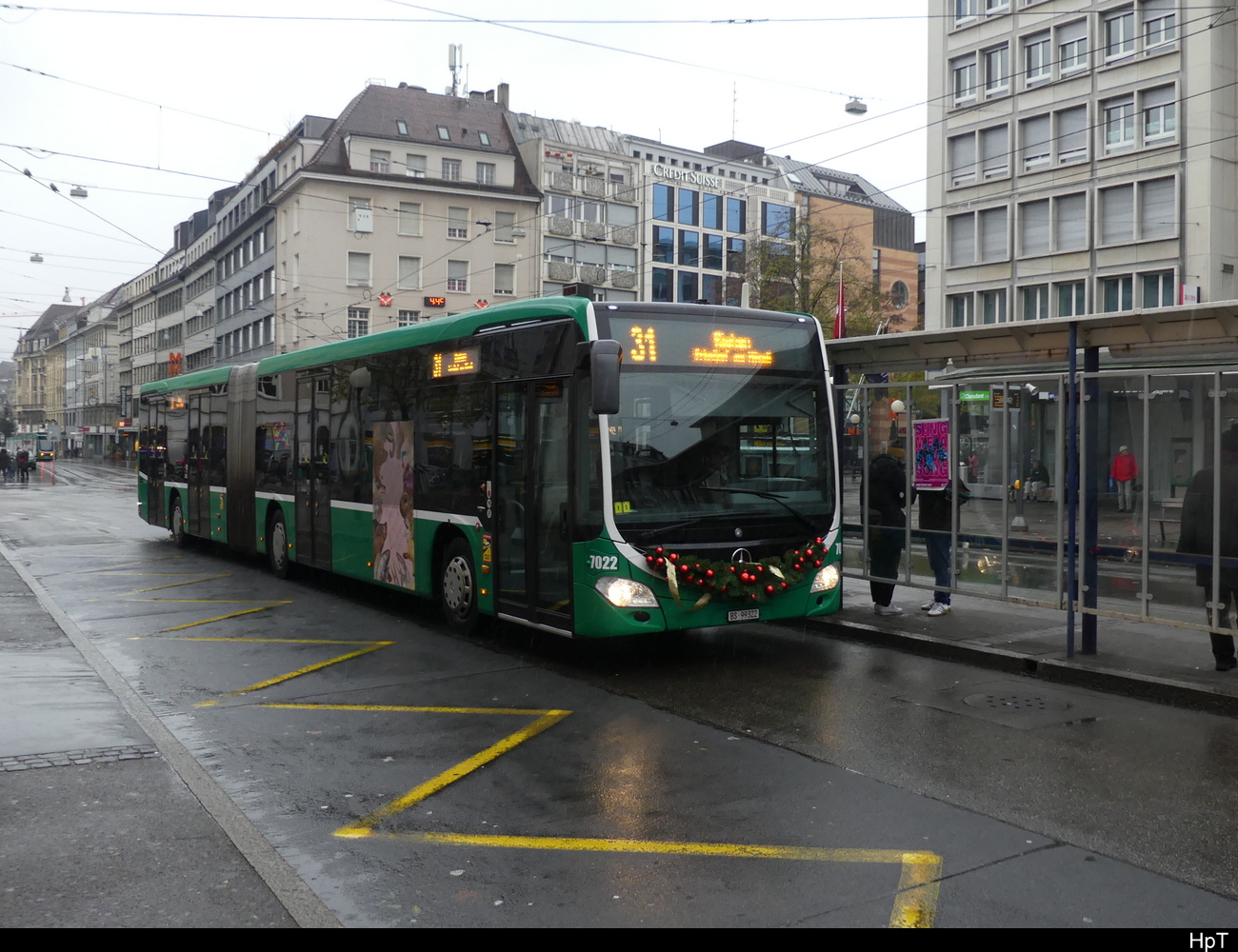 BVB - Mercedes Citaro Nr.7022  BS 99322 unterwegs in der Stadt Basel am 04.12.2022