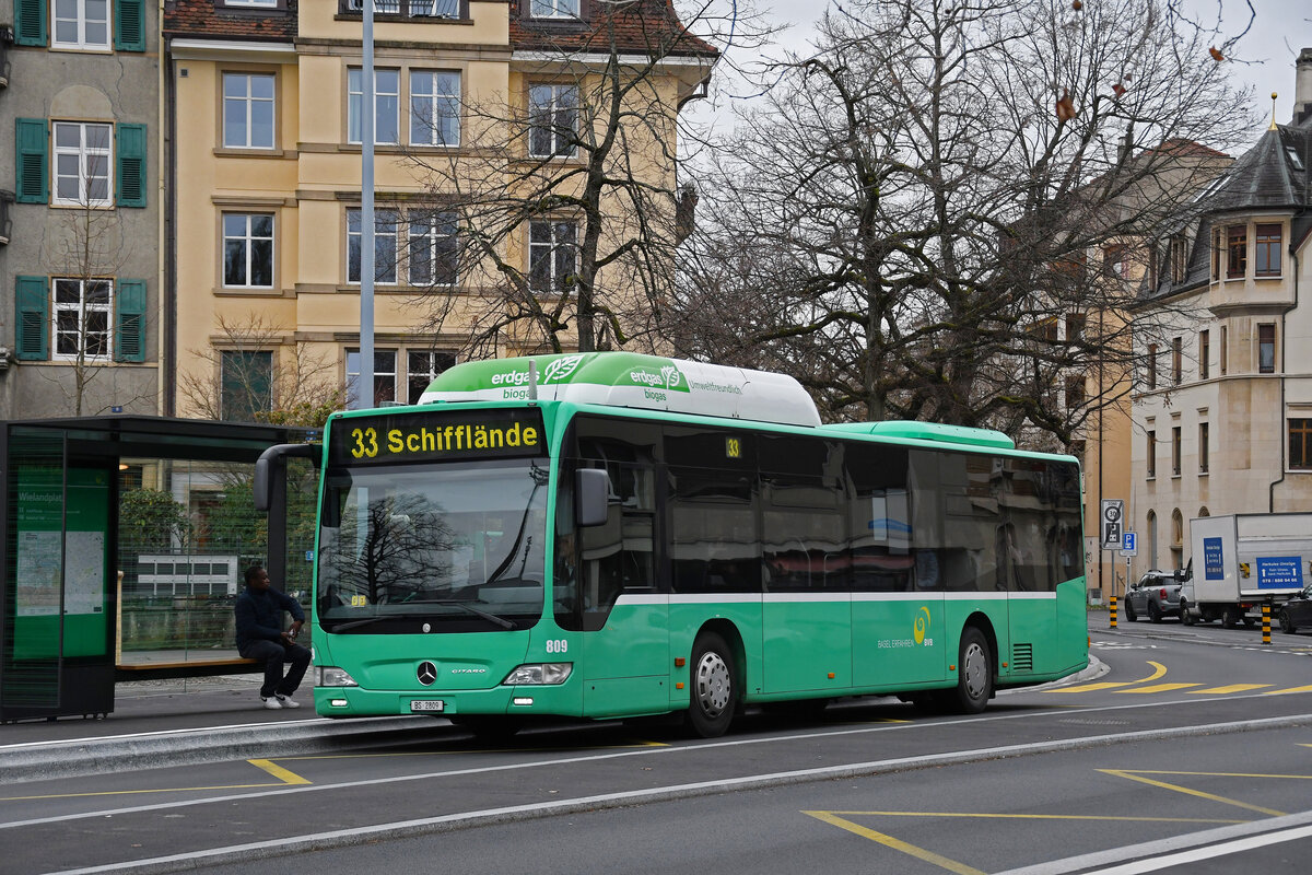 Mercedes Citaro 809, auf der Linie 33, fährt am 04.01.2023 bei der Haltestelle Wielandplatz ein.