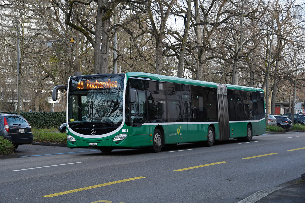 Mercedes Citaro 7037, auf der Linie 34, wartet am 01.11.2025 an der Endstation in Bottmingen.