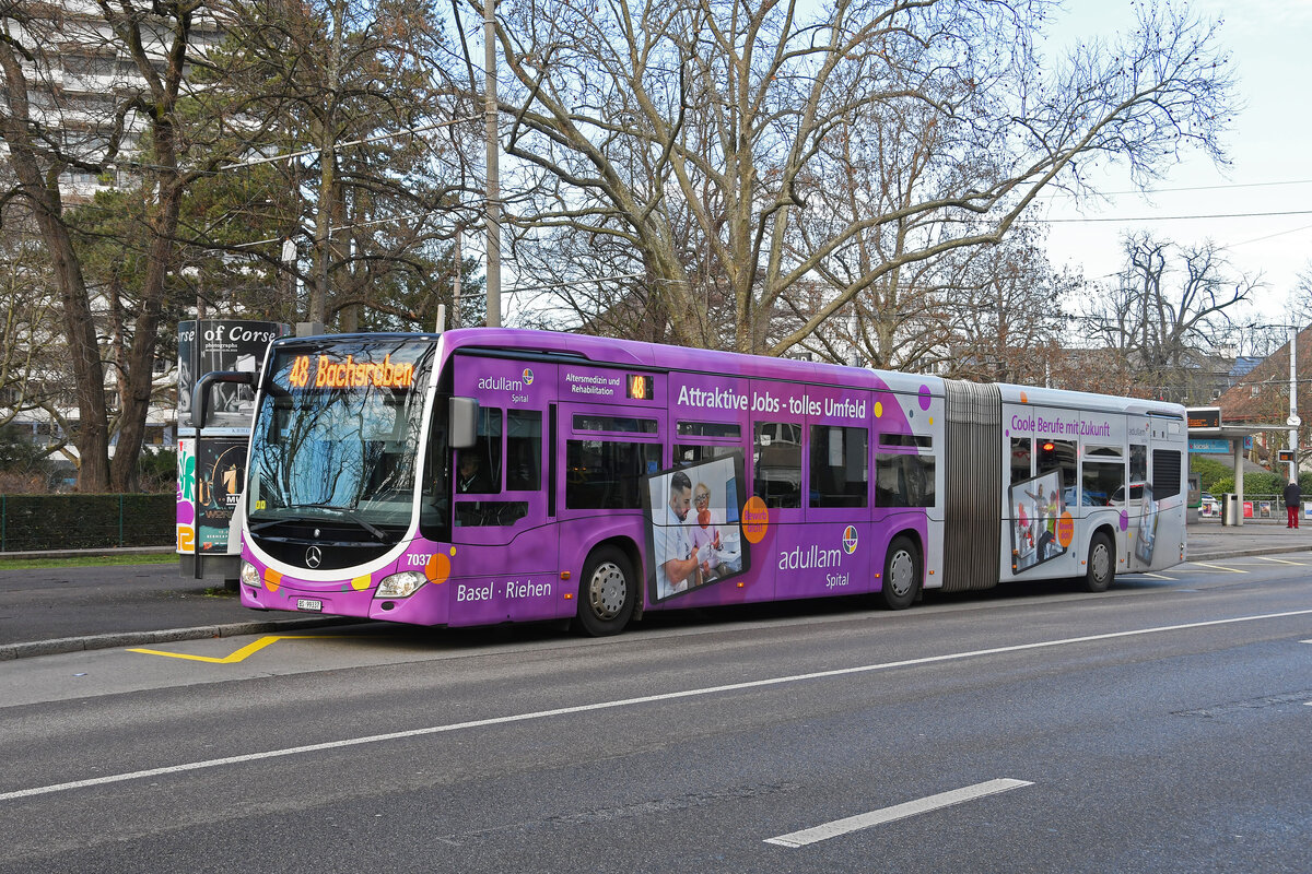 Mercedes Citaro 7037, auf der Linie 34, wartet am 01.11.2025 an der Endstation in Bottmingen.