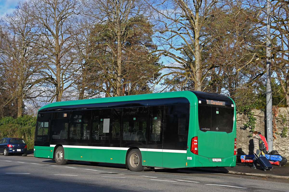 Mercedes eCitaro 8115, auf der Linie 31, fährt am 15.01.2023 zur Endstation am Otto Wenk Platz.