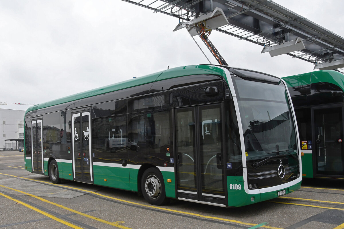 Mercedes eCitaro 8109 wird am 27.01.2023 im Klybeck Areal aufgeladen.