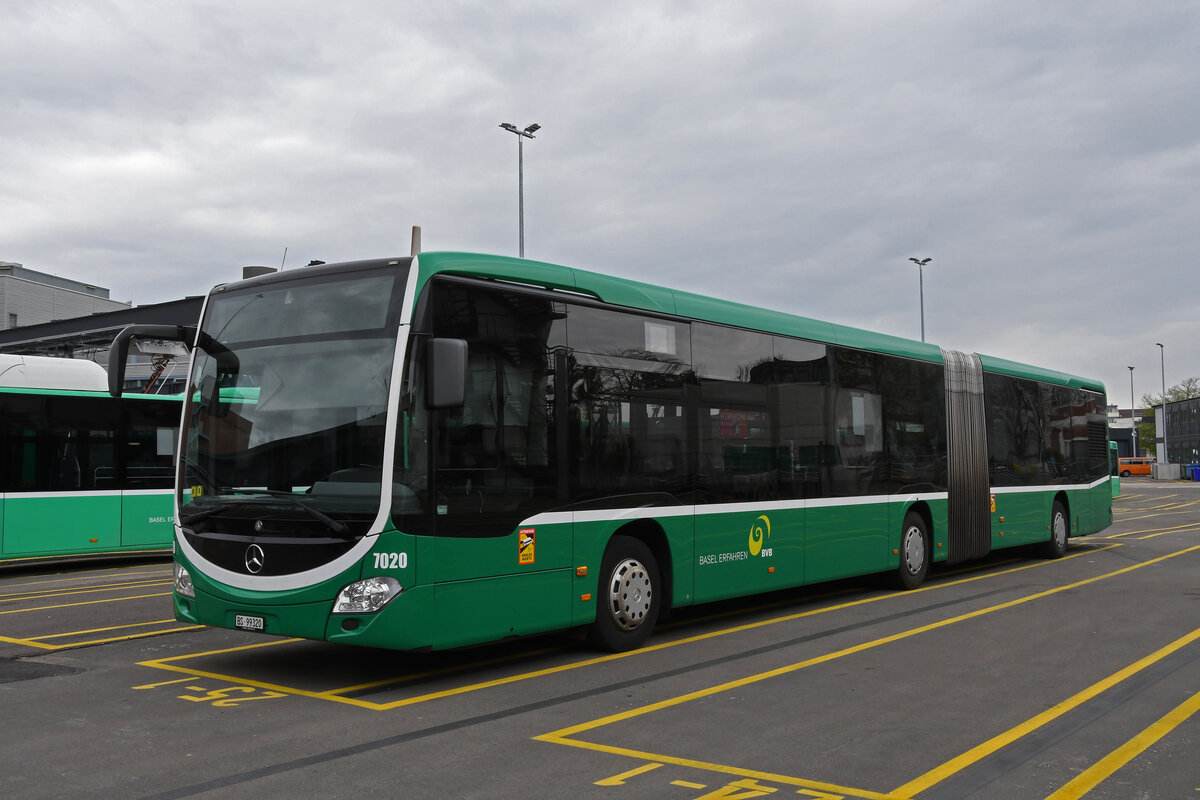 Mercedes Citaro 7020 steht am 21.04.2023 auf dem Klybeck Areal.