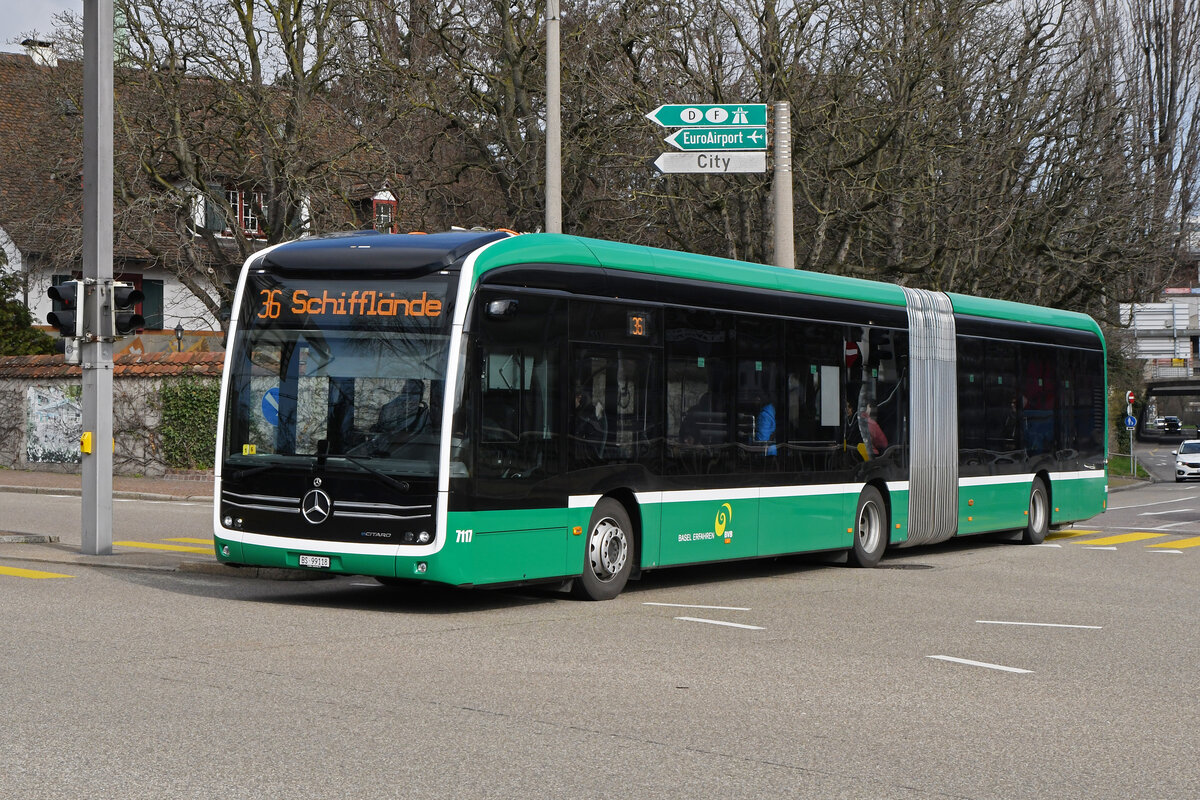 Mercedes eCitaro 1717, auf der Linie 36, fährt am 08.03.2024 zur Haltestelle St. Jakob.