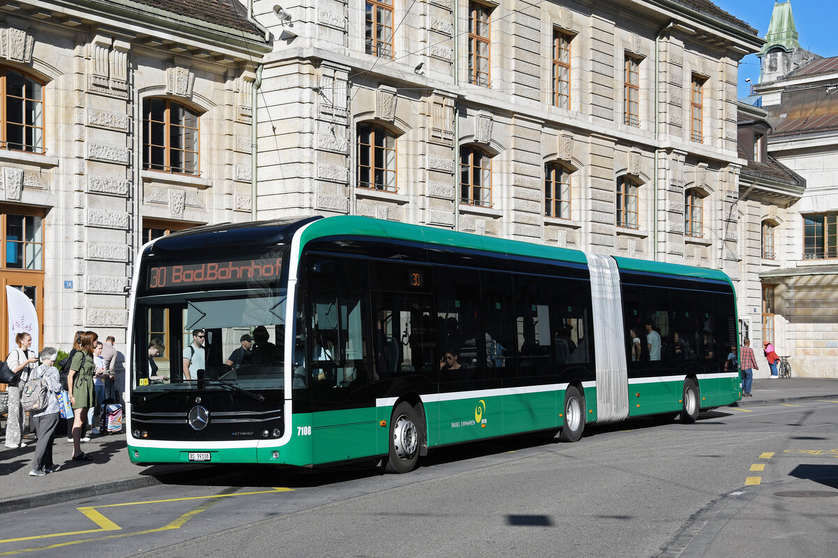 Mercedes eCitaro 7108, auf der Linie 30, wartet am 09.07.2024 an der Endstation am Bahnhof SBB.