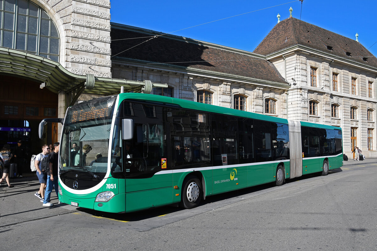 Mercedes Citaro 7051, auf der Linie 50, wartet am 09.07.2024 an der Endstation am Bahnhof SBB.