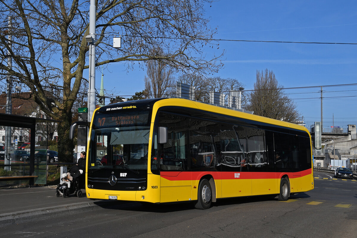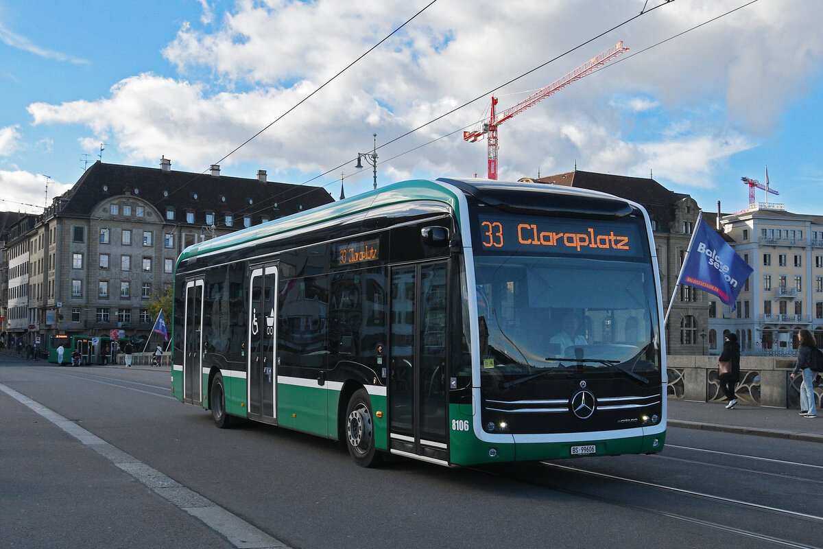 Mercedes eCitaro 7107, auf der Linie 36, fährt am 05.01.2026 bei der Haltestelle St. Jakob ein. Aufnahme Basel.