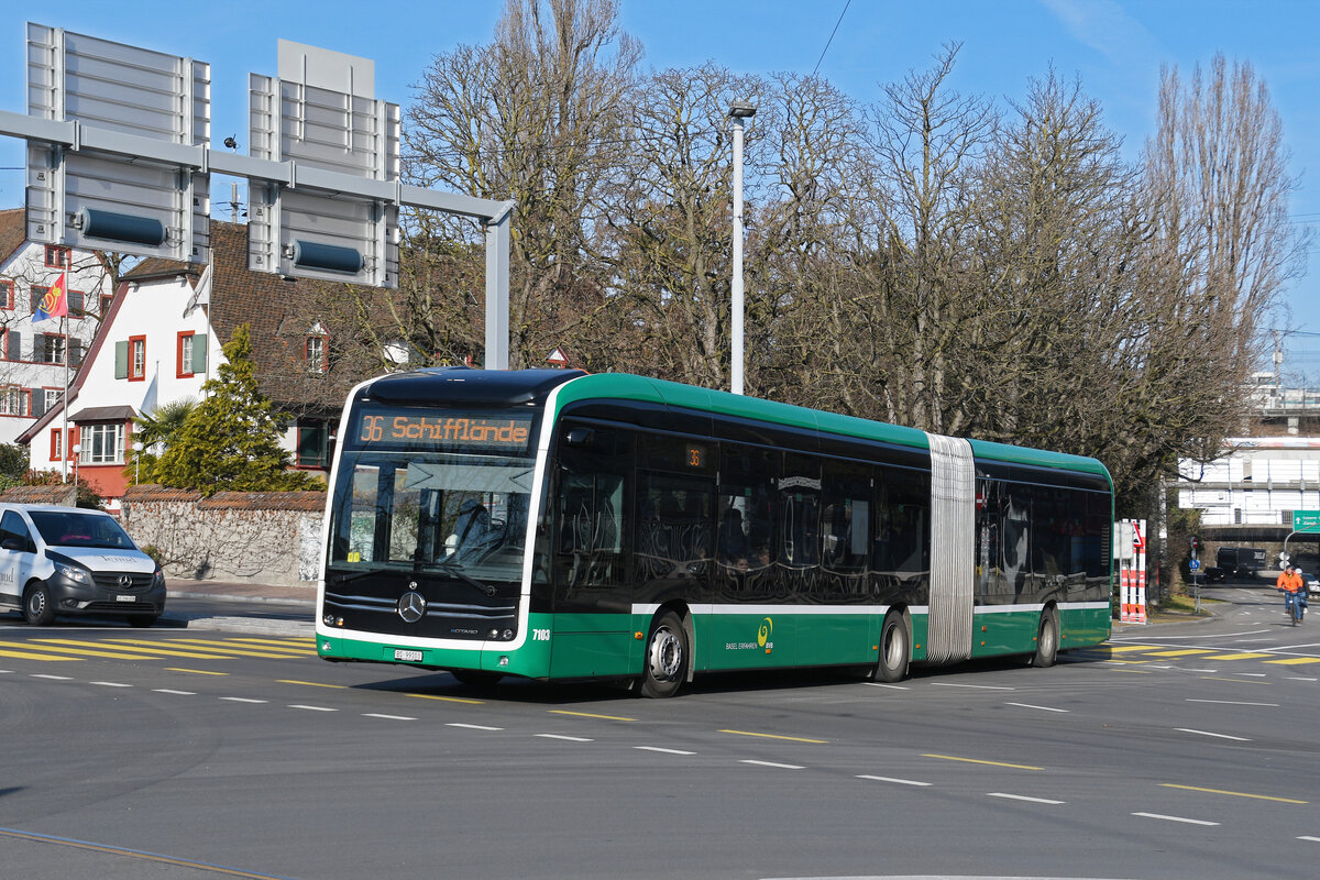 Mercedes Citaro 7017, auf der Linie 34, überquert am 05.01.2026 die Mittlere Rheinbrücke. Aufnahme Basel.