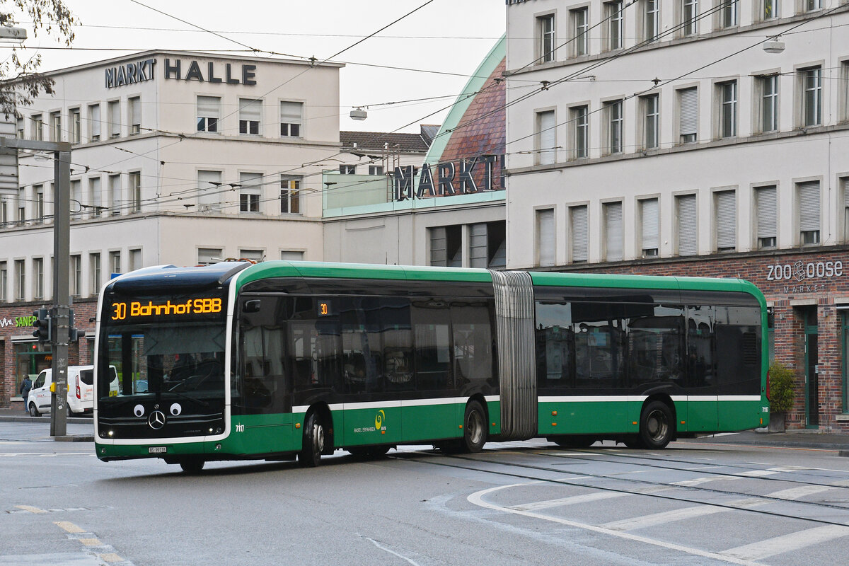 Mercedes Citaro 7042, auf der Linie 48, wartet am 22.12.2025 an der Endstation am Bahnhof SBB. Aufnahme Basel.