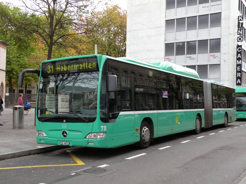 Am Claraplatz wartet Bus 711 auf seine Abfahrtszeit.Die Aufnahme entstand am 11.10.2009.