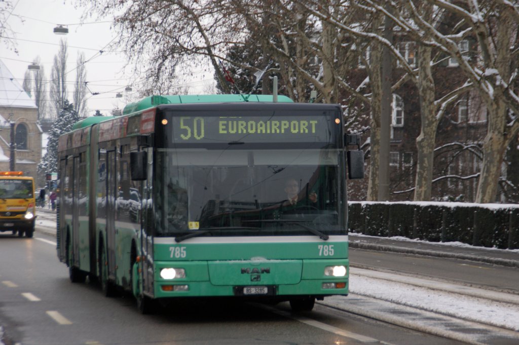 MAN Bus mit der Betriebsnummer 785 fährt Richtung Bahnhof SBB. Die Aufnahme stammt vom 10.02.2010.