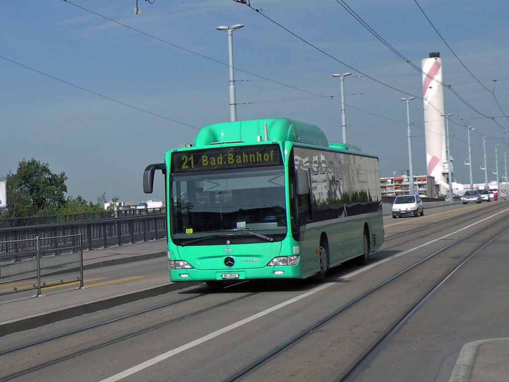 Wegen grossen Bauarbeiten beim Messeplatz muss die Linie 21 mit Bussen betrieben werden. Hier Mercedes Citaro mit der Betriebsnummer 810 bei der Haltestelle Dreirosenbrücke. Die Aufnahme stammt vom 09.07.20