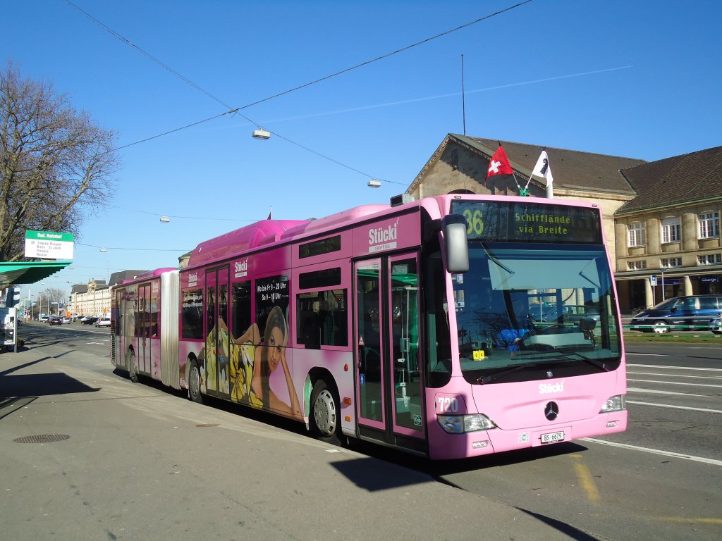 BVB Basel - Nr. 720/BS 6679 - Mercedes Citaro am 7. Februar 2011 in Basel, Bad. Bahnhof (mit Vollwerbung für "Stücki")