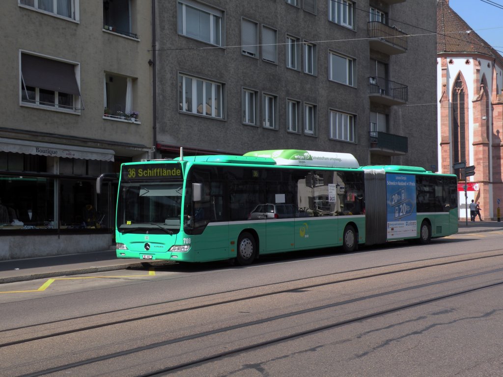 Mercedes Citaro mit der Betriebsnummer 708 auf der Linie 36 bei der Predigerkirche in Basel. Die Aufnahme stammt vom 02.05.2011.
