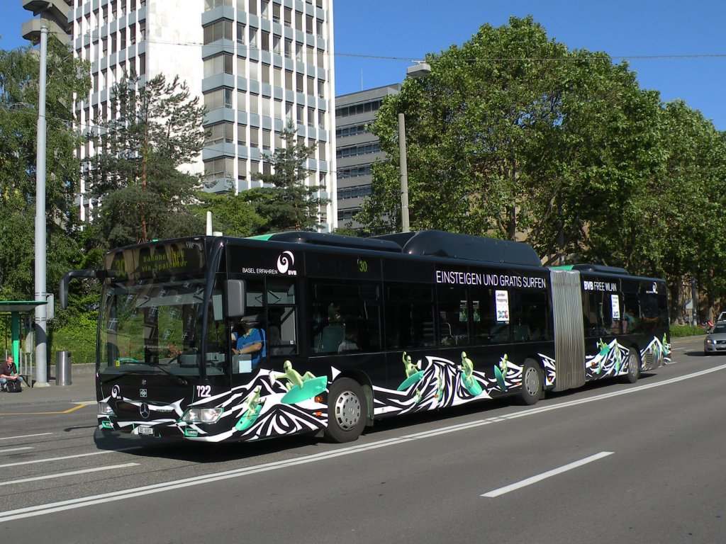 Mercedes Citaro mit der Betriebsnummer 722 auf der Linie 30 beim Badischen Bahnhof.