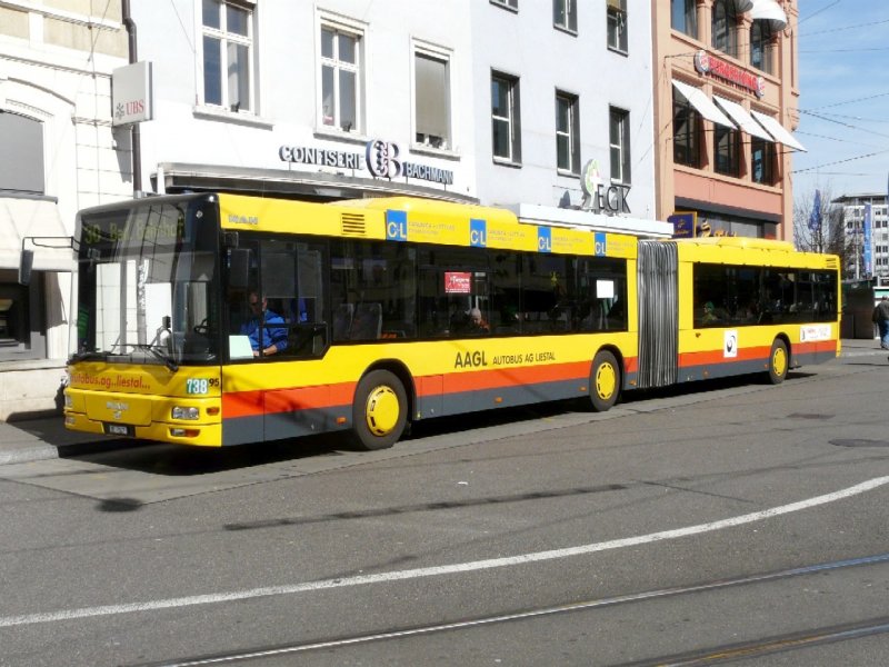 AAGL - MAN Gelenkbus Nr.95 BL 7042 unterweg bei der BVB als Nr 738 vor dem SBB Bahnhof in Basel am 15.03.2008