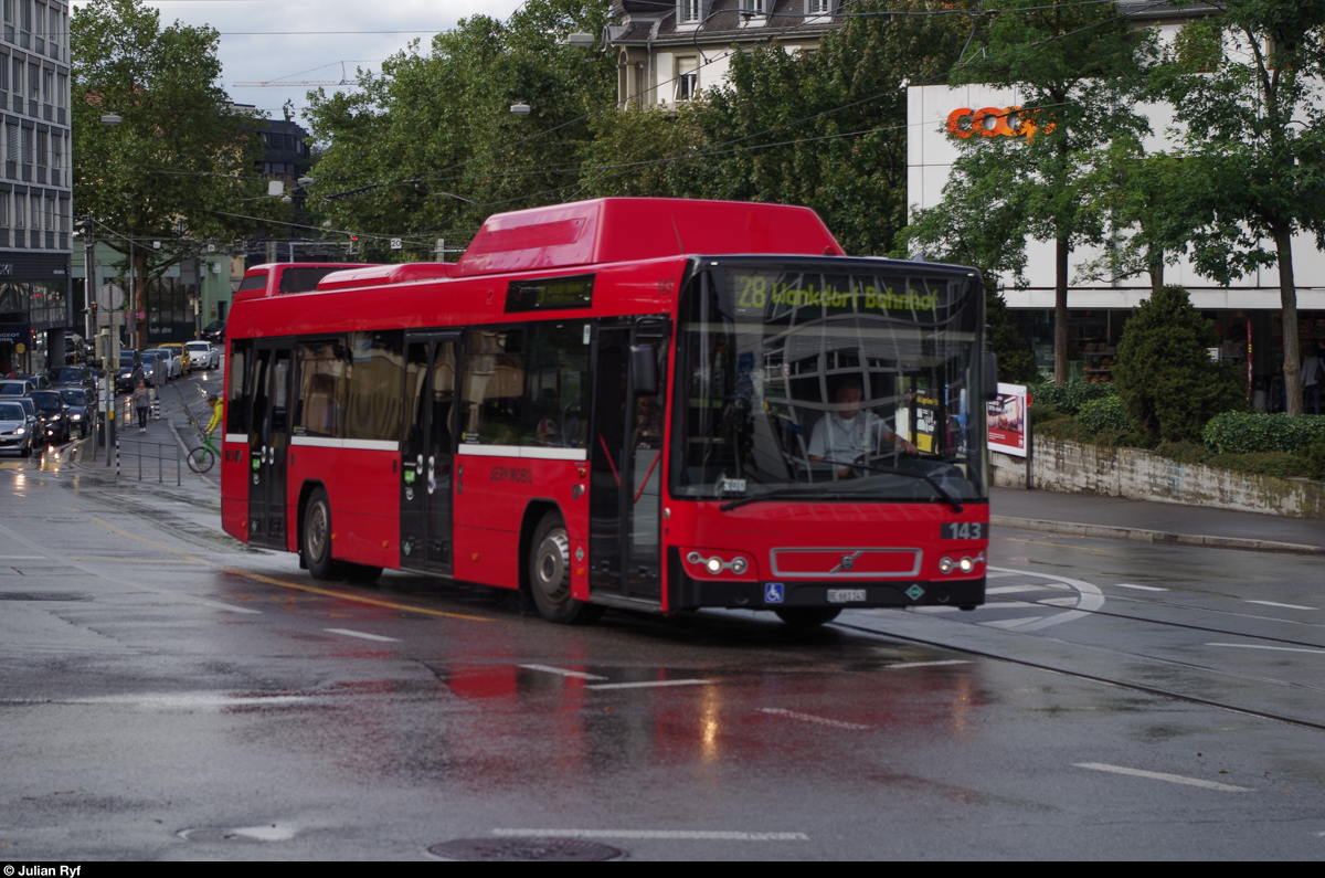 BERNMOBIL Volvo 143 am 15. August 2014 auf der Linie 28 am Eigerplatz.
