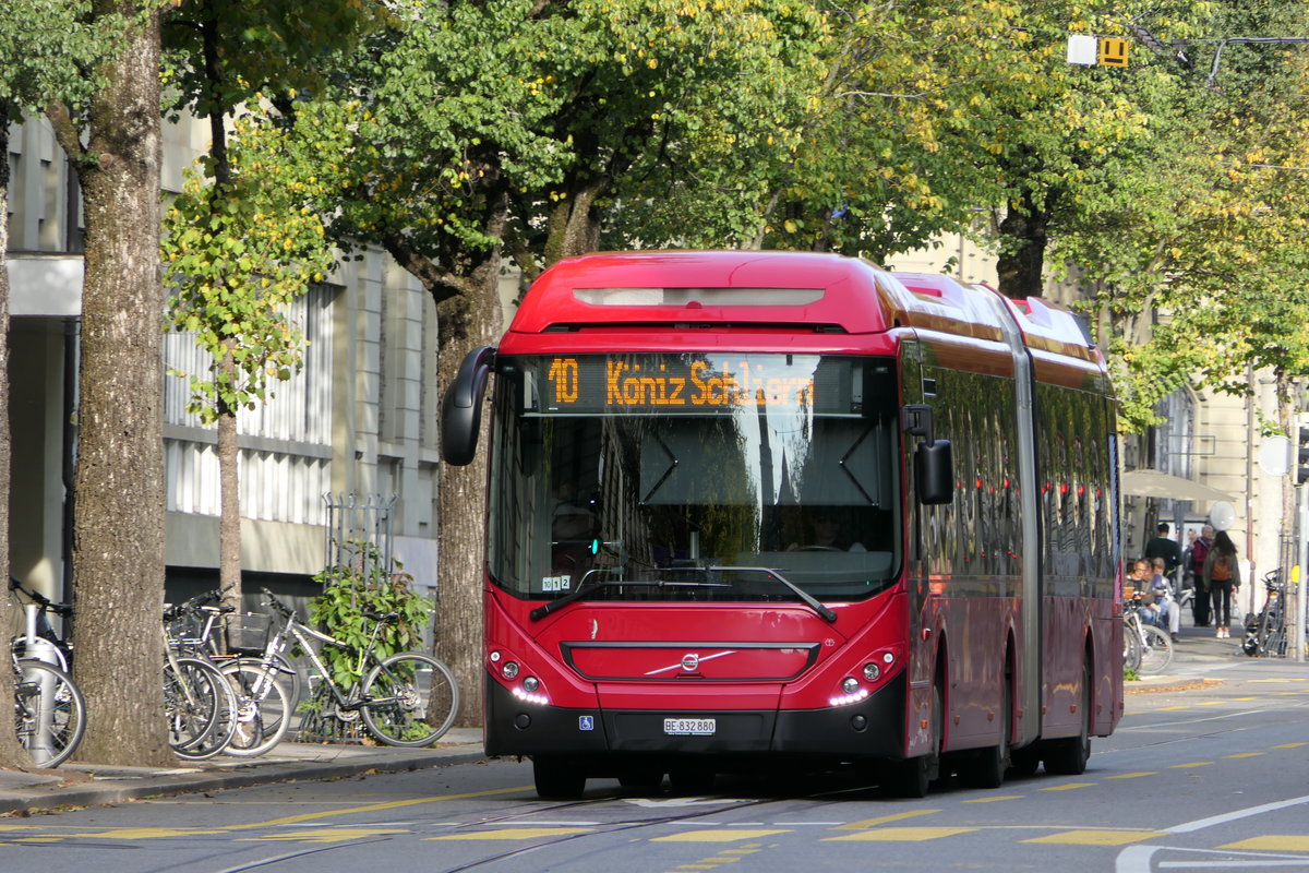 Bern Mobil - Volvo 7900 Hybrid Nr.238 BE 881238 mit Werbung unterwegs auf der Linie 17 bei den Haltestellen vor dem SBB Bahnhof in Bern am 14.11.2025 Hp. Teutschmann