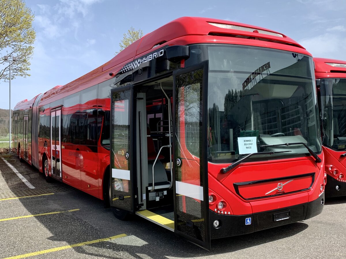 Neuer Gelenkbus Volvo 7900 Hybrid Nr. 213 für BERNMOBIL am 13.4.22 bei Volvo Münchenbuchsee.