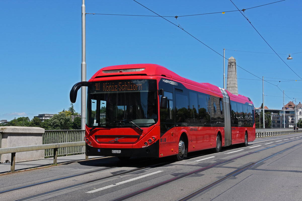 Volvo Hybrid Bus 881, auf der Linie 10, überquert die Kornhausbrücke. Die Aufnahme stammt vom 08.07.2022.
