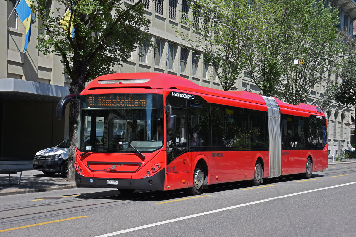 Volvo Hybridbus 880, auf der Linie 10, fährt durch die Bundesgasse. Die Aufnahme stammt vom 08.07.2022.