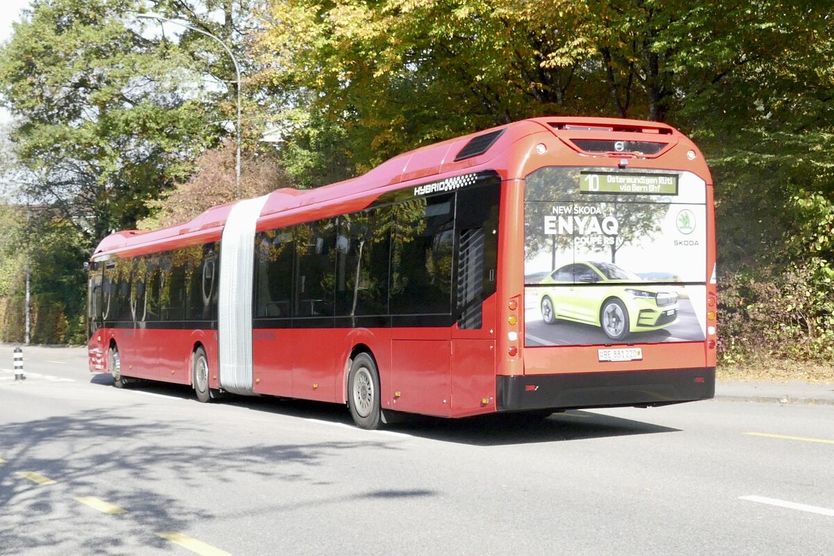 Heckansicht des Volvo 7900 Hybrid 220 am 19.10.22 kurz nach Köniz Schliern.