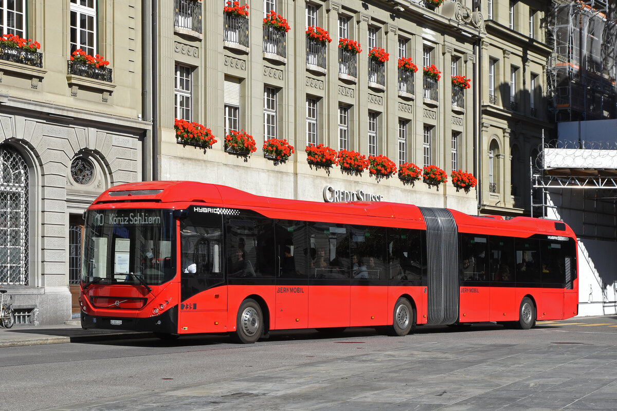 Volvo Hybridbus 239, auf der Linie 10, bedient am 04.10.2022 die Haltestelle beim Bundesplatz.