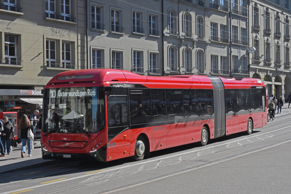 Volvo Hybridbus 212, auf der Linie 10, bedient am 04.10.2022 die Haltestelle Zytglogge.