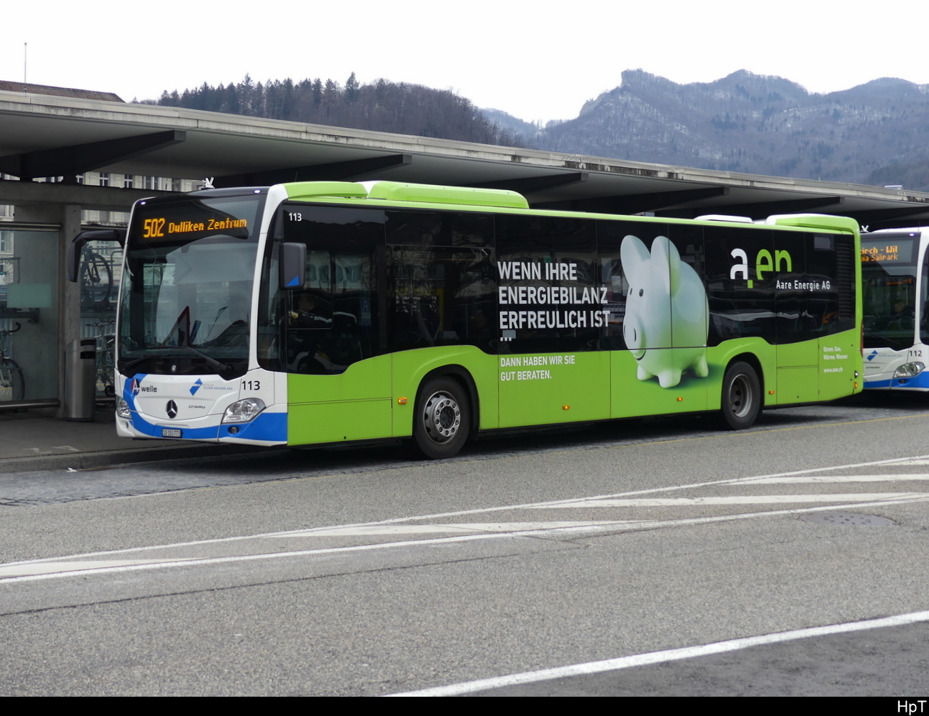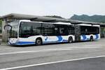 Mercedes Citaro Hybridbus, auf der Linie 612, wartet am 09.05.2025 an der Haltestelle beim Bahnhof Rothrist.