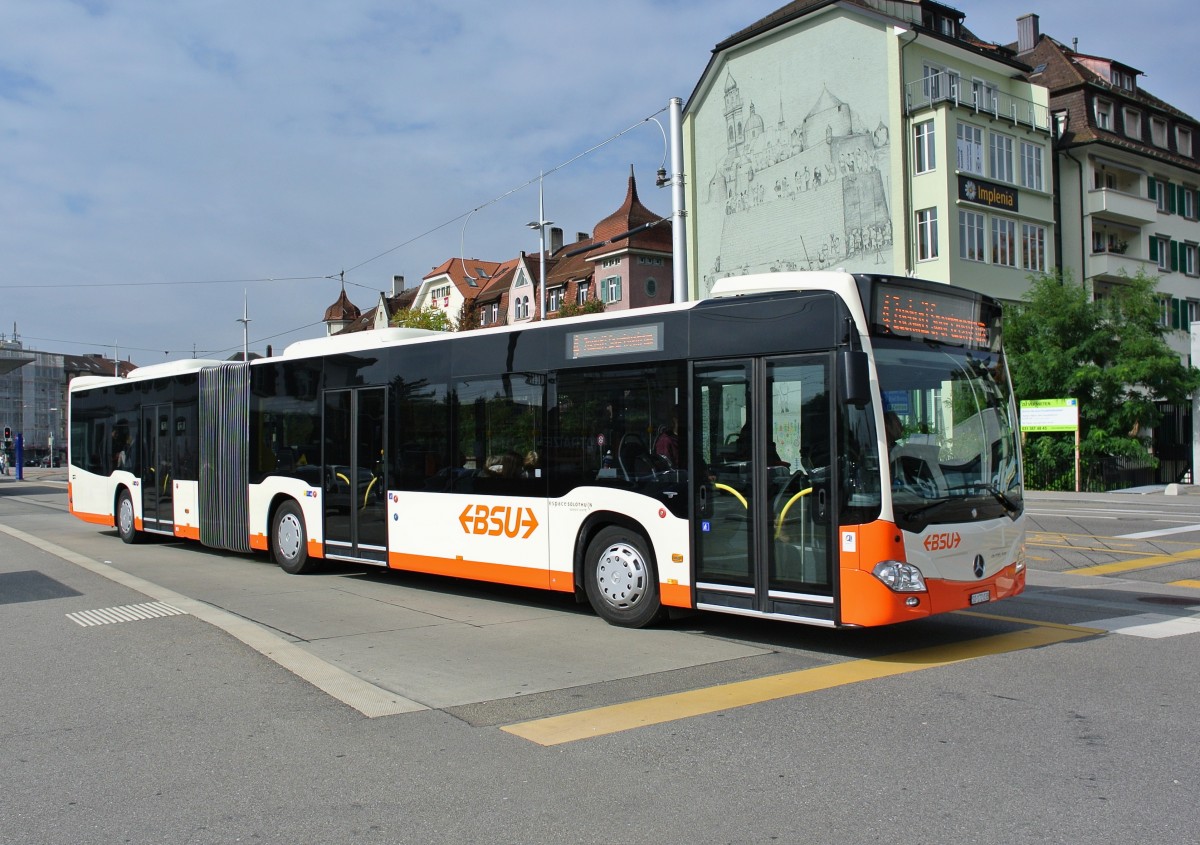 Beim BSU sind seit kurzem die ersten Citaro C2G im Einsatz. Im Bild ist Wagen Nr. 38 auf der Linie 4 beim Hauptbahnhof Solothurn, 01.10.2013.