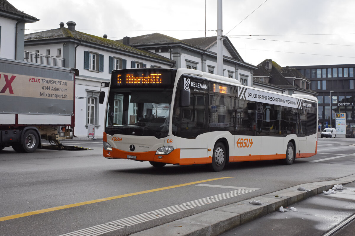 Mercedes Citaro 88 der BSU, auf der Linie 6, fährt zur Haltestelle am Bahnhof Solothurn. Die Aufnahme stammt vom 06.12.2021.