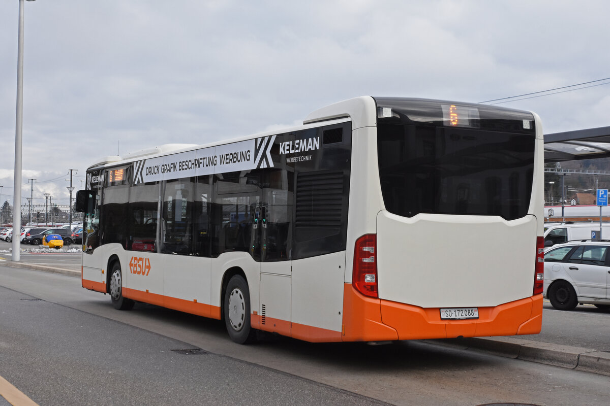Mercedes Citaro 88 der BSU, auf der Linie 6, wartet an der Haltestelle beim Bahnhof Solothurn. Die Aufnahme stammt vom 06.12.2021.