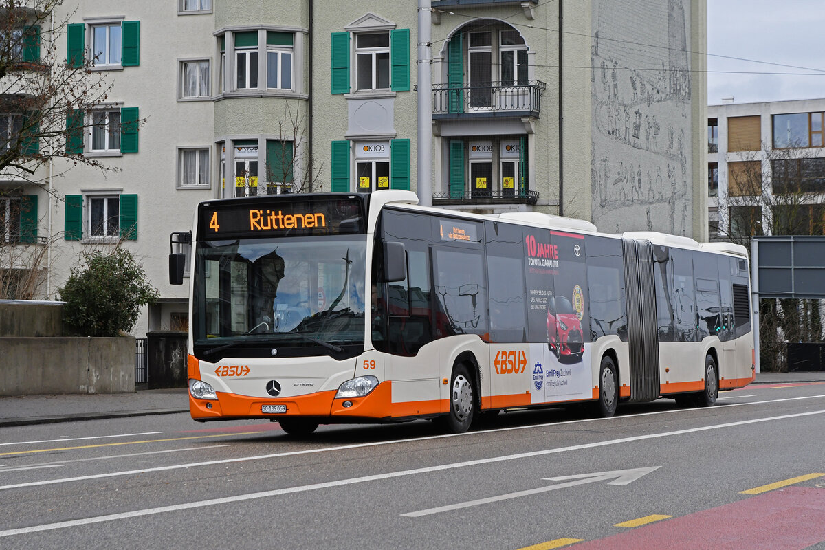 Mercedes Citaro 59, auf der Linie 4, fährt am 18.01.2023 zur Haltestelle beim Bahnhof Solothurn.