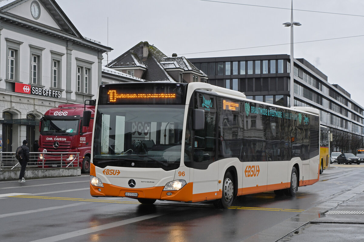 Mercedes Citaro 96, auf der Linie 10, fährt am 18.01.2023 zur Haltestelle beim Bahnhof Solothurn.