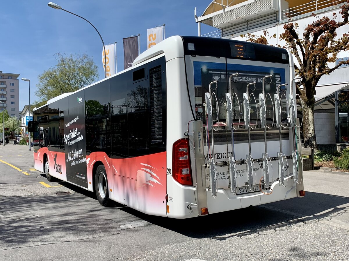 Heckansicht des MB C2 Ü Nr. 20 am 20.4.22 beim Bahnhof Grenchen Süd.