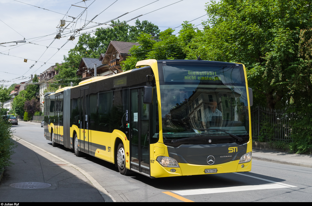 Ein Citaro-Gelenkbus der neusten Generation, welcher für die benachbarte STI bestimmt ist in der Nähe der BERNMOBIL-Garage Eigerplatz.