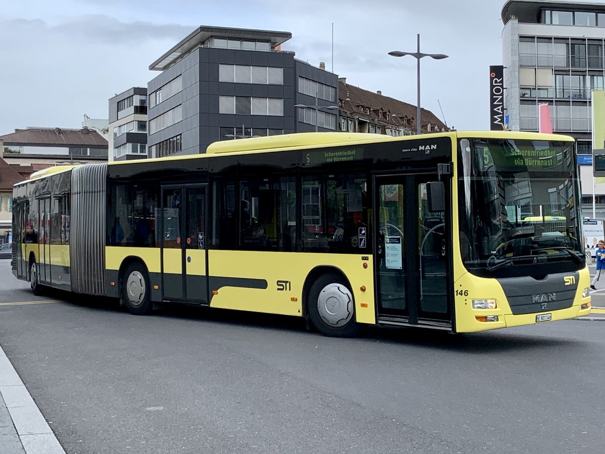 MAN Lion's City Gelenker 146 am 27.9.20 bei der Abfahrt vom Bahnhof Thun.