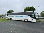 Mercedes Citaro 713 der STI mit der Werbung für den Panorama Center, auf der Linie 21, wartet am 31.07.2023 an der Endstation beim Bahnhof Interlaken Ost.