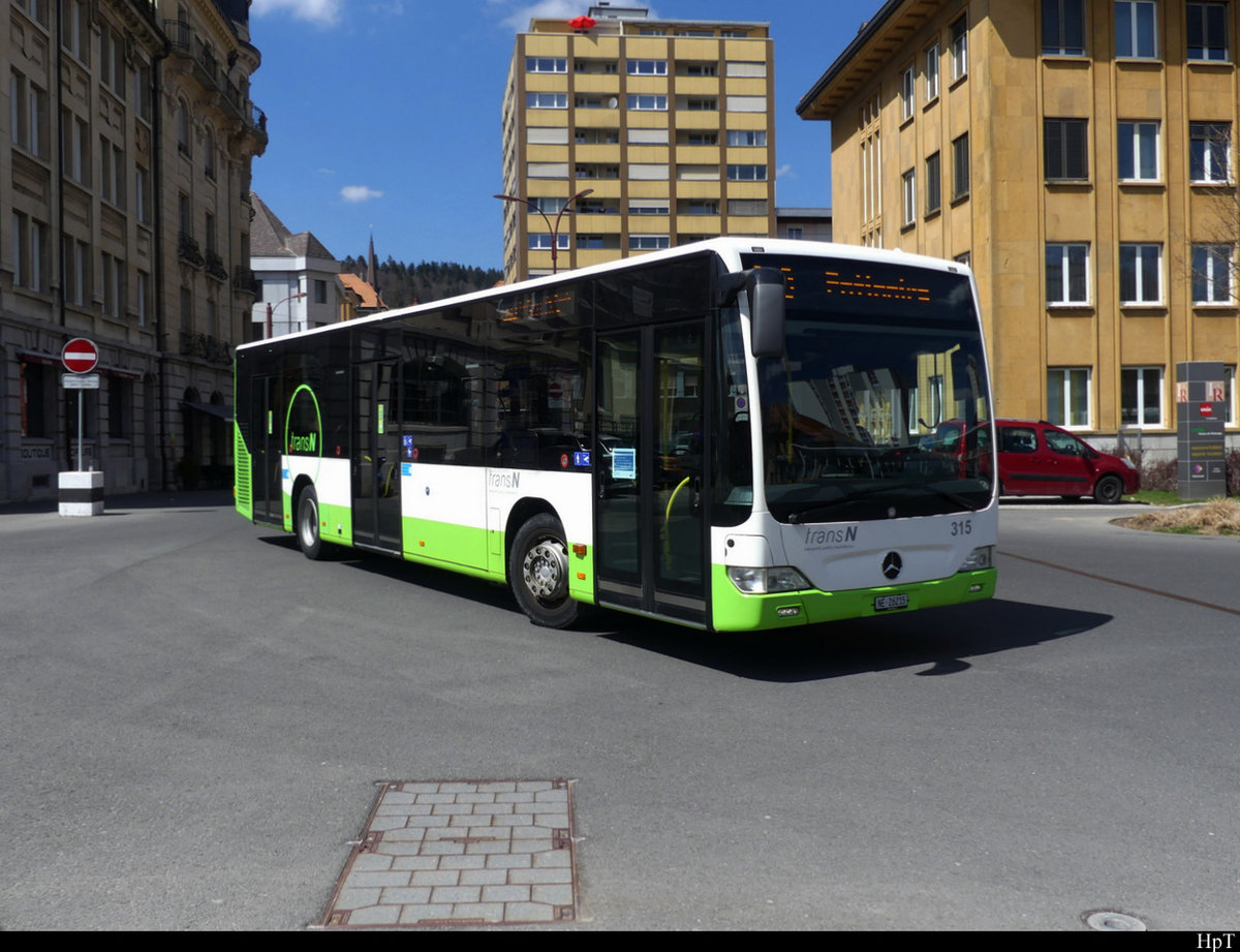 TransN - Mercedes Citaro Nr.315  NE 26215 unterwegs in La Chaux de Fonds am 24.04.2021