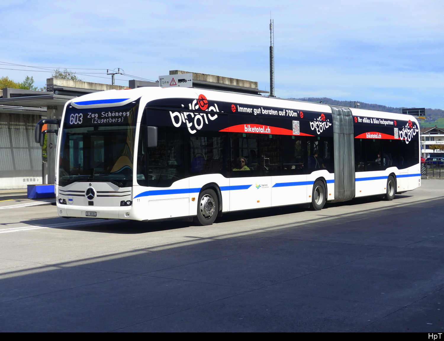 Zugerland - Solaris Urbino Nr.174 ZG 88174 mit Hess Anhänger unterwegs in Unteägeri auf der Linie 601 am 11.06.2025